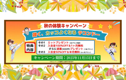 ☆【秋の体験キャンペーン!】強く、カッコよくなるテコンドー!~11月15日まで!☆